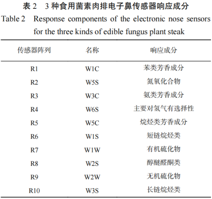 2.1 3种食用菌素肉排对电子鼻传感器响应分析