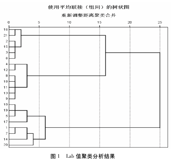 综合Lab值和RGB值聚类分析,两个颜色系统都可以对黄桃罐头色泽进行分类,但是RGB值更接近于人眼视觉,能更好的对黄桃罐头进行分类。