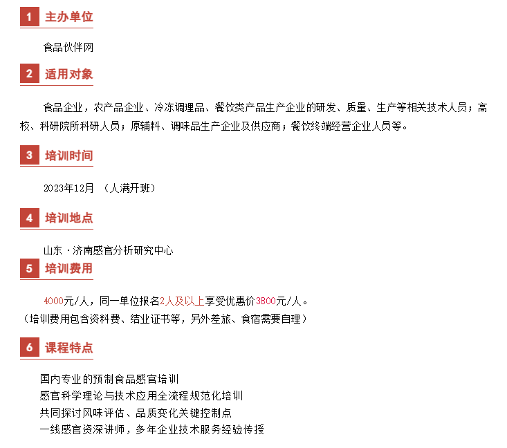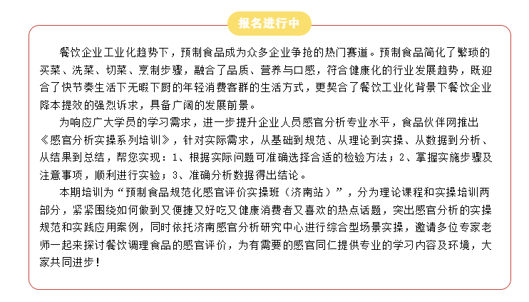 持续招生〡12月SEPA预制食品规范化感官评价实操班,我们在济南等您!