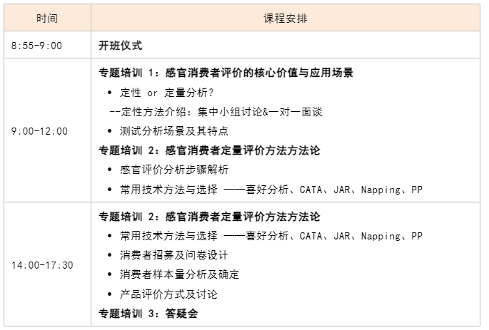 适用对象:基础薄弱的感官分析师、消费者研究人员、企业研发人员、第三方检测人员、高校老师、市场及公司管理者等